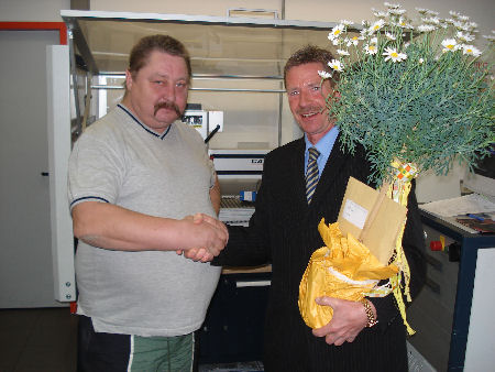 Der allseits bewährte Fachmann für unsere Abteilung Gehäusebearbeitung am Standort Emskirchen, Herr Dieter Stumpf, feierte am 2. Mai 2007 sein 10-jähriges Betriebsjubliläum bei der BKG.