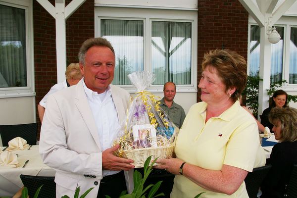 Die Betriebsleiterin der NL Rustow, Dipl.-Ing. Petra Heit gratuliert dem Jubilar Werner Pfeifer anlässlich des Festaktes in Vorpommern.