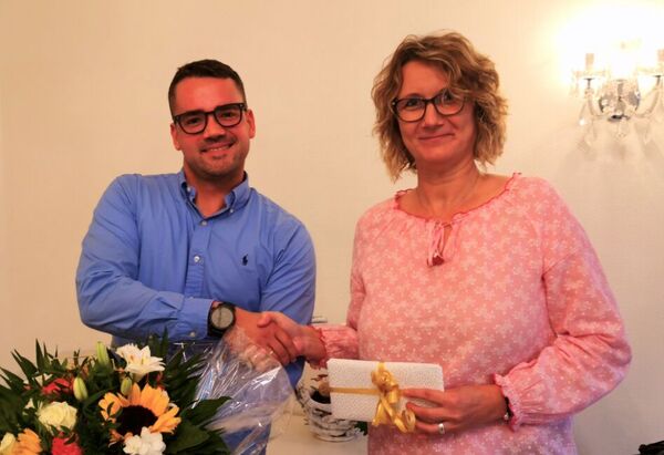 Peter Belletti zusammen mit Claudia Kühn (kaufmännische Betriebsleitung) anlässlich der Gratulation.