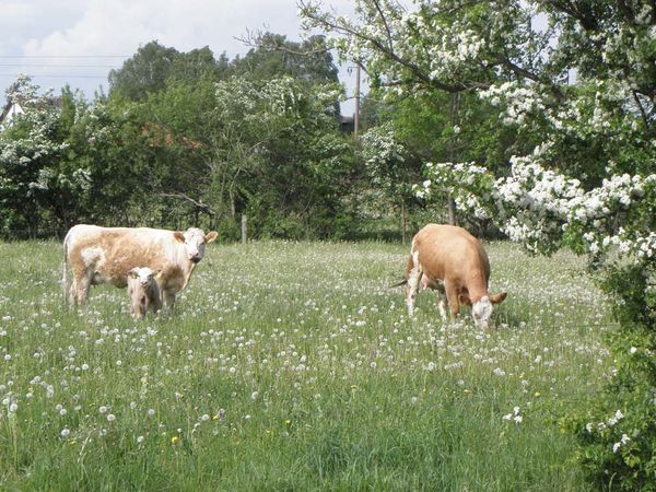 Die Kühe verscheuchen die Frösche und wenn diese wegspringen, dann schnappt sie der Storch mit seinem langen Schnabel und verschlingt sie!,In unmittelbarer Nähe des Gutshauses Rustow weiden in den Auen der Peene diese bulligen Wasserbüffel. Sie zu beobachten ist ein Spektakel ganz besonderer Art. ,Und die Natur in Mecklenburg-Vorpommern ist wahrlich eine Pracht! Arbeiten müssen wir hier natürlich auch, aber die reizvolle Umgebung erleichtert gar manches.