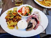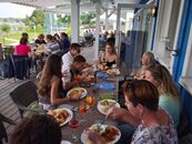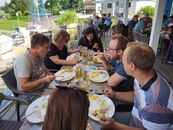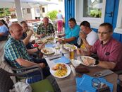 Zunächst ging es mit dem Bus-Shuttle vom Gutshaus Rustow nach Neppermin. Dort wurden wir im "Fischpalast" zum Mittagessen mit leckeren Speisen und Getränken verwöhnt.