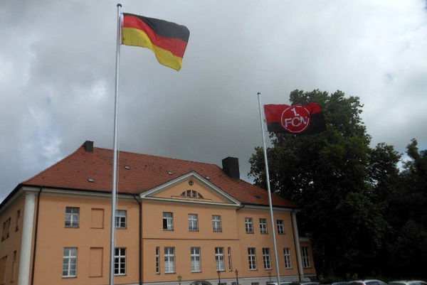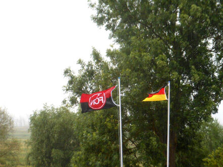 um uns herum. Daher haben wir es uns hier in der NL Loitz / Rustow auch nicht nehmen lassen – dem Ereignis entsprechend die Fahnen zu hissen: Neben den BECK-Fahnen am Eingang flattern nun auch die deutsche und die des glorreichen 1. FCN über die Peenelandschaft.