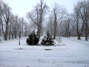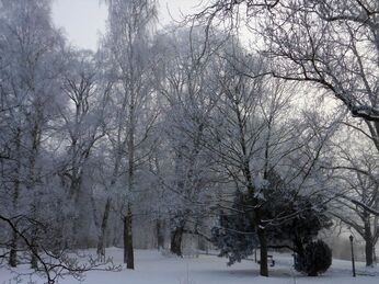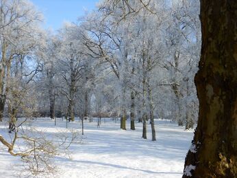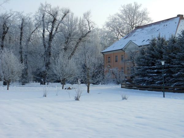Sie zeigen unseren Park um das Gutshaus Rustow – eingekleidet im Schnee und im Eis.