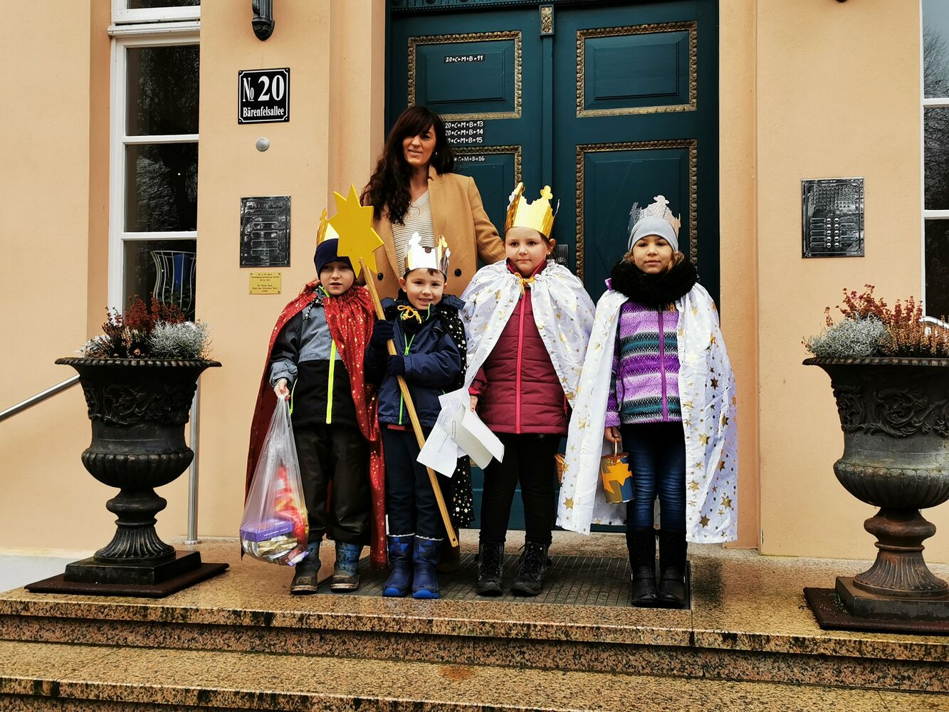 brachten sie zum Anlass ihres Erscheinens das Zeichen *C*M*B 2020. Aus dem Lateinischen: "Christus Mansionem Benedicat (Gott segne dieses Haus) an die Eingangstüre des Gutshauses an.