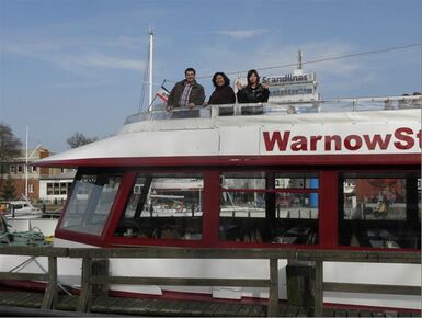 Nach dem Meeting ging es dann zusammen mit Herrn Frese und Frau Arnhold auf zu einem Kurztrip in die Hansestadt Rostock und an die Ostseeküste in Warnemünde. Mittels einer Hafenrundfahrt und einer kleinen Führung durch die Stadt konnte unser fernöstlicher Besuch einen Eindruck von unserer Heimat bekommen. Auch abends blieb es spannend, als es dann Zeit für das Dinner war. Denn dies gab es nicht wie üblich in einem „normalen“ Restaurant, sondern in einem mittelalterlichen Keller mit Hofmusik und recht deftigen Gerichten. Wer Besteck suchte musste früher oder später feststellen, dass nur die eigenen Hände als Hilfsmittel erlaubt waren. Egal ob Suppe oder eine halbe Ente.
