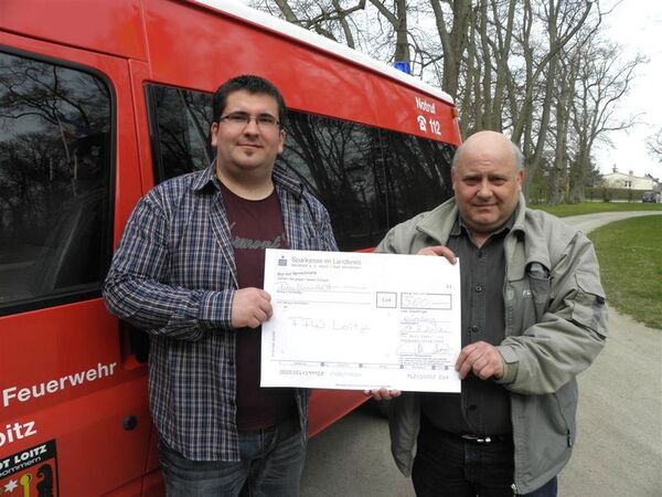 Anlässlich der 125-Jahr-Feier der FFW (freiwillige Feuerwehr) Loitz überreichte Herr Frese im April eine Spende von 500 EUR an den Stellvertreter der FFW.