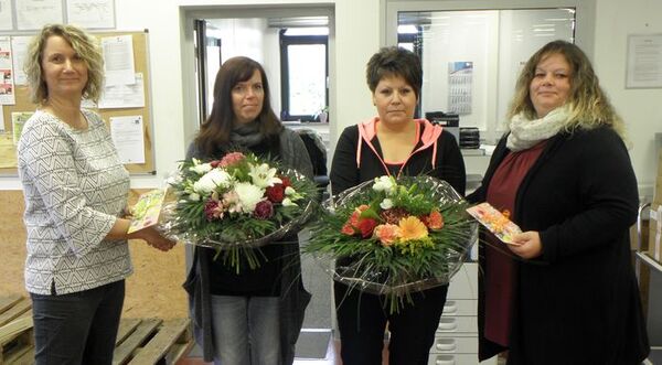 V.l.n.r.: Claudia Kühn (Leitung Qualitätswesen), Daniela Rostalski, Marina Gapparov und Katja Rösicke (Produktionstechnische Leitung) anlässlich der Gratulation.