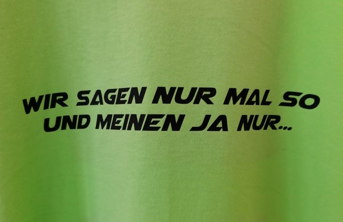 Anlässlich der Gratulation gab es von den Kollegen/-innen ein markantes T-Shirt mit einem originellen Aufdruck (auf der Rückseite), welchen nicht nur wir alle, sondern auch ganz besonders das Geburtstagskind mit Schmunzeln zur Kenntnis genommen hat.