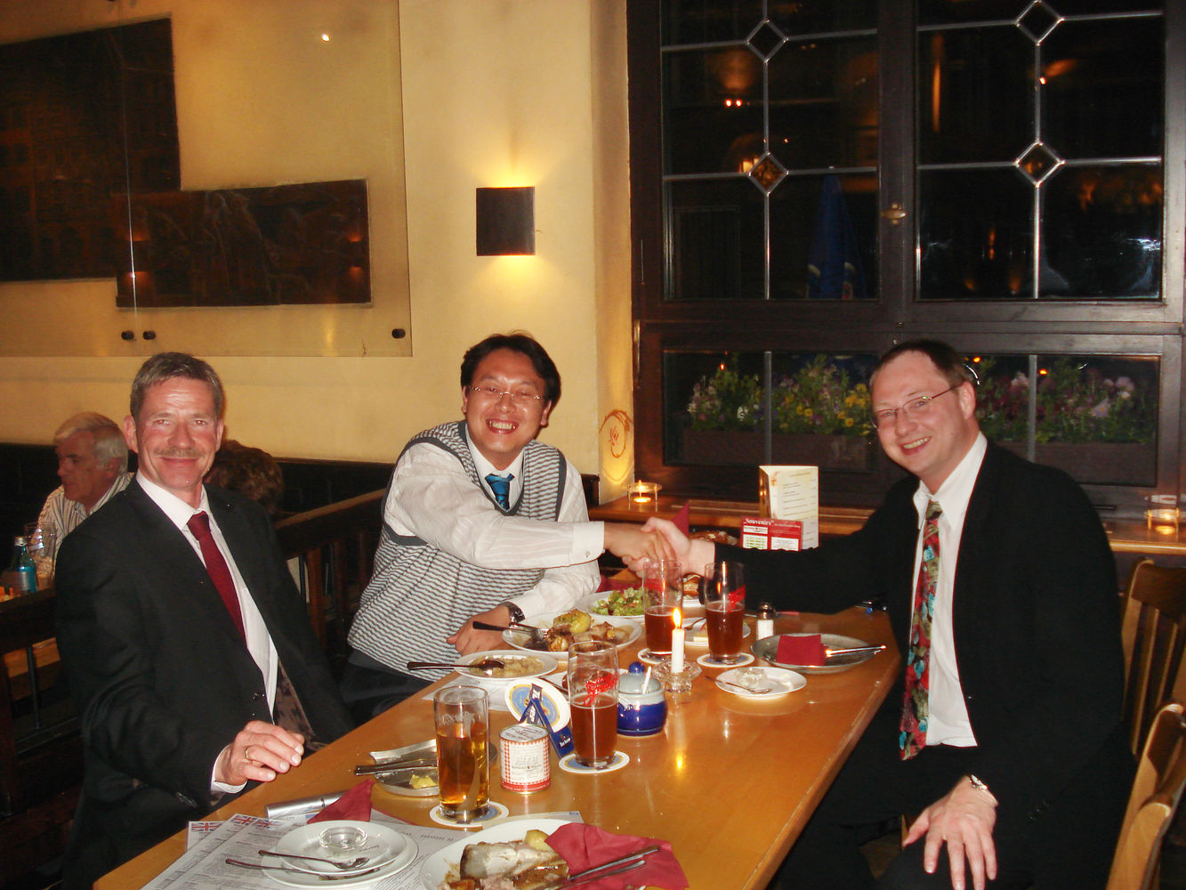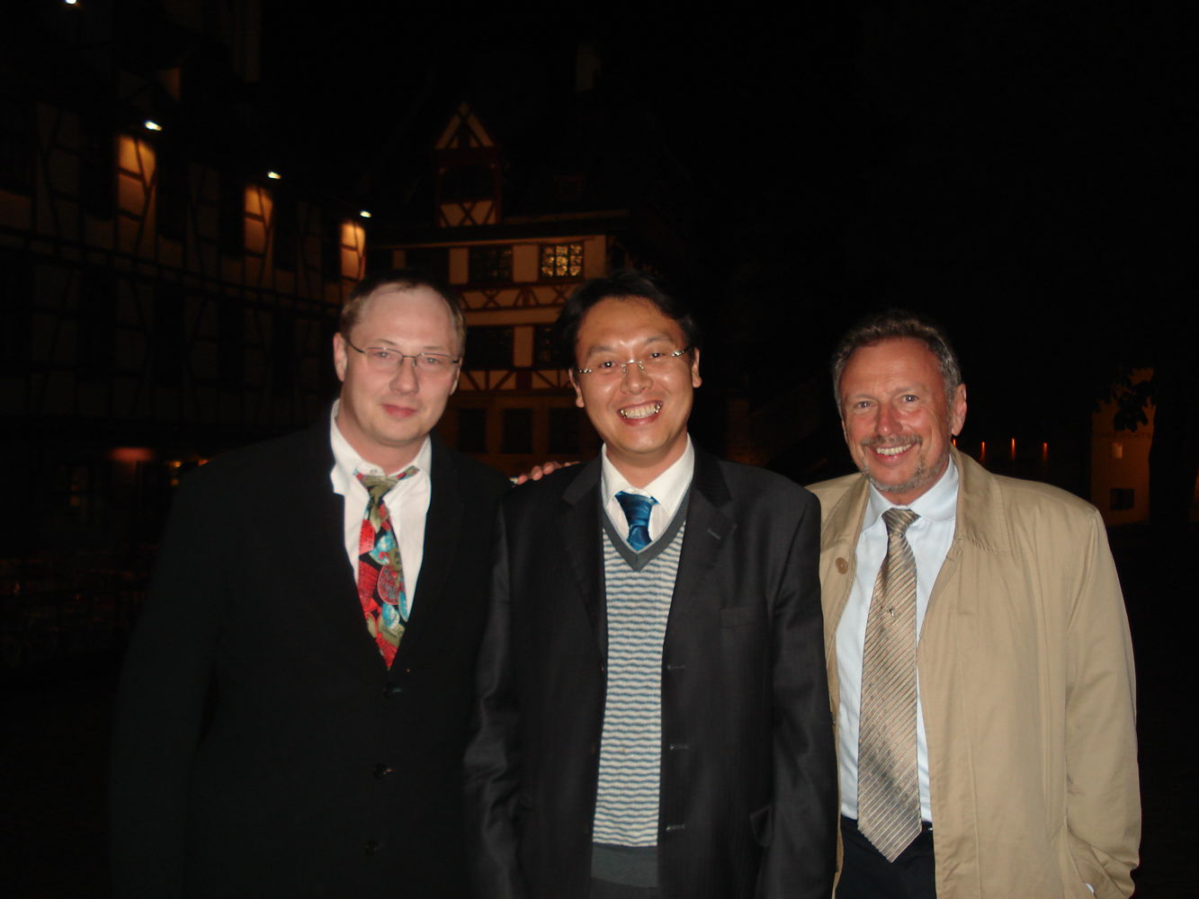 Nach der Rückkehr von einer solchen Reise zu unseren Kunden in Baden-Württemberg, trafen sich die Beteiligten zu einem gemeinsamen und gemütlichen Abendessen im weltberühmten „Bratwurst-Röslein“ inmitten der Nürnberger Altstadt. Gegrillte Schweinshaxe mit fränkischen Kartoffelklößen, Rostbratwürste vom Grill mit Meerrettich und Sauerkraut ließen nicht nur das Herz von Mr. Peter Na, sondern auch das der Herren Pfeifer, Bähr und Beck höher schlagen. Dazu gab es fränkisches Kellerbier und eine kleine Unterweisung der Bedeutung unserer alten Reichsstadt Nürnberg über den Zeitlauf der Geschichte. Auch das dunkle Kapitel der Stadt im Dritten Reich, blieb dabei nicht unerwähnt. War doch das „Schatzkästlein des Reiches“ und die „Deutscheste aller Städte“ der Ort des „Führers und Reichskanzlers“ Adolf Hitler, von der aus die Bewegung ihren Ausgangspunkt nahm. Noch heute zeugen die größten Monumentalbauten des „Dritten Reiches“ von diesem Tatbestand.