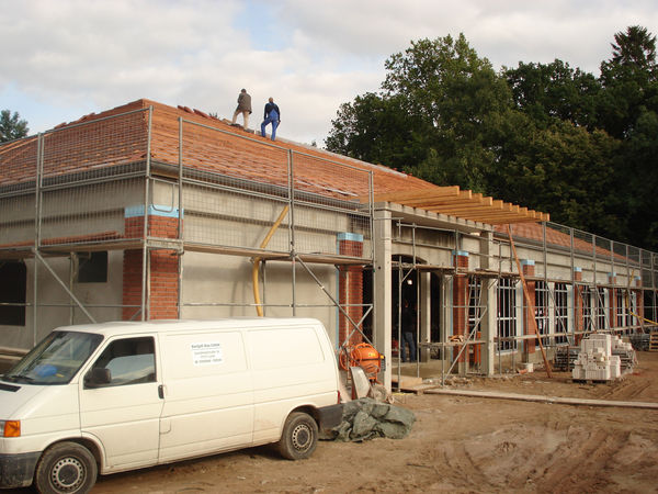 Der Rohbau samt dem Dach ist zwischenzeitlich fertig gestellt und wir hoffen auf eine Inbetriebnahme der neuen Fertigungsstätte bis Ende des ersten Quartals 2009.