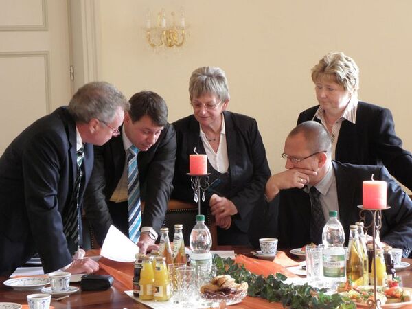 Der erneuten Initiative von Frau Holznagel ist es nun zu verdanken, daß wir wiederum Besuch aus dem Wirtschaftsministerium in dieser Angelegenheit erhielten: Herr Thomas Weber aus dem Referat "Förderung der kommunalen Infrastruktur" machte sich vor Ort ein Bild von der Sachlage. Anschließend wurde bei einem Gespräch im "Eiersaal" des Gutshauses Rustow die Pläne nochmals eingehend erörtert.