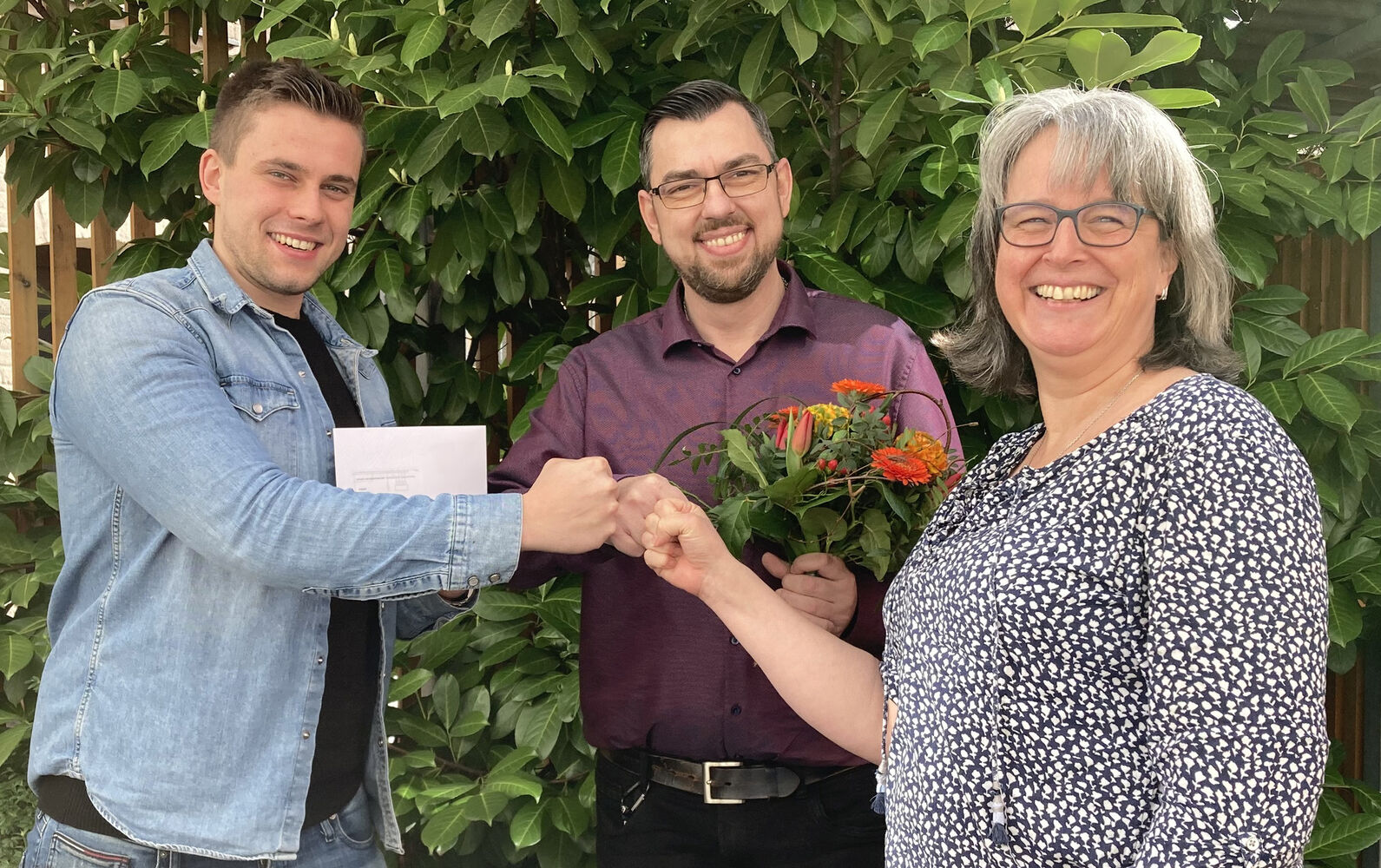 Der Jubilar (Mitte) zusammen mit der Niederlassungsleiterin Silke Pfeifer und Konstantin Beck (links) anlässlich der Gratulation.