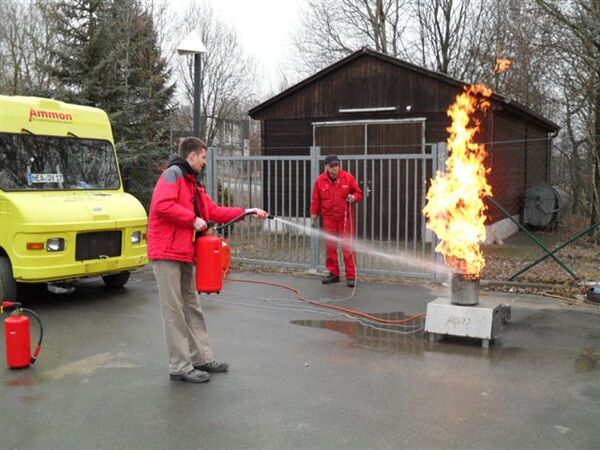 Nach der Evakuierung konnte noch jeder, der wollte, mit einem Feuerlöscher das Löschen üben. Trotzdem immer daran denken:  es könnte auch der Ernstfall sein.