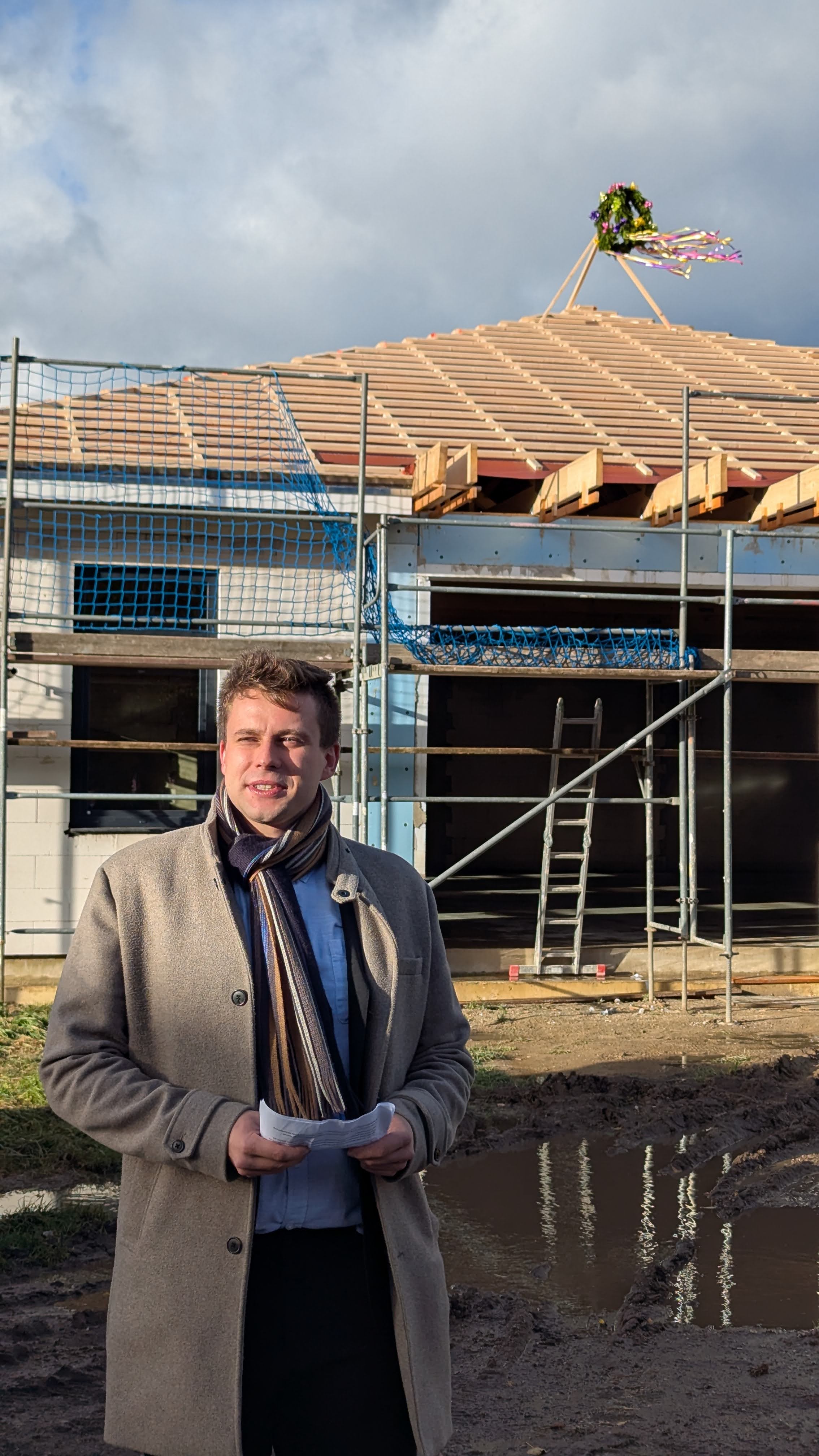 … und am 30. Oktober war es so weit. Die Richtkrone weht im Wind über unserem Neubau!